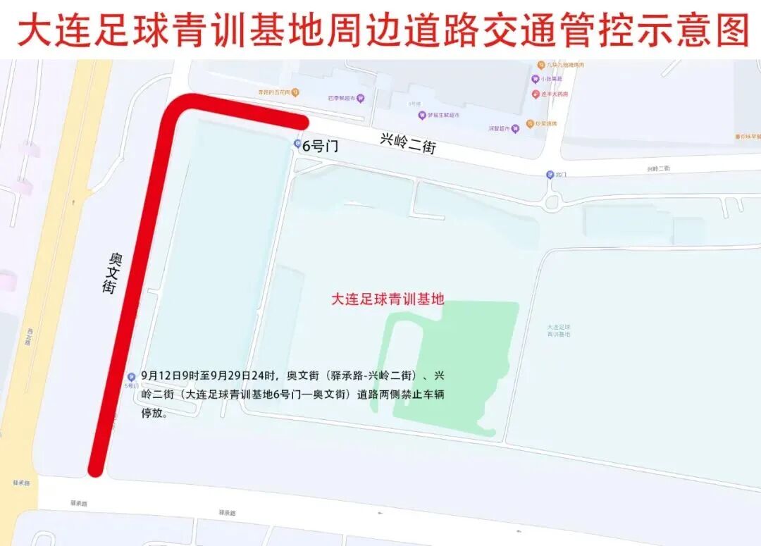 一、9月12日9時至9月29日24時,下列大連足球青訓基地周邊道路兩側禁止車輛停放: