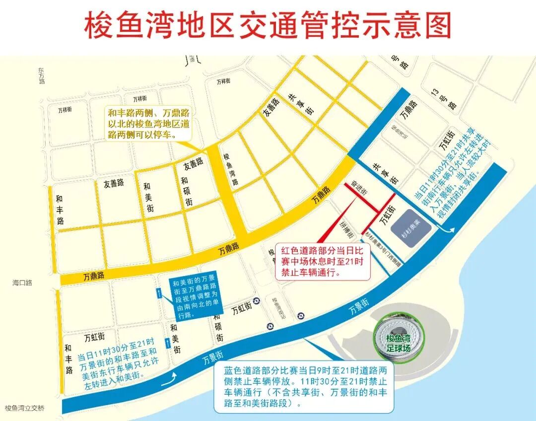 四、沿途單位和市民請?zhí)崆昂侠戆才懦鲂?。大連梭魚灣足球場賽事期間可由東快路、萬鼎路、和豐路、萬景街(和豐路以西路段)、大連灣海底隧道進出梭魚灣地區(qū)。