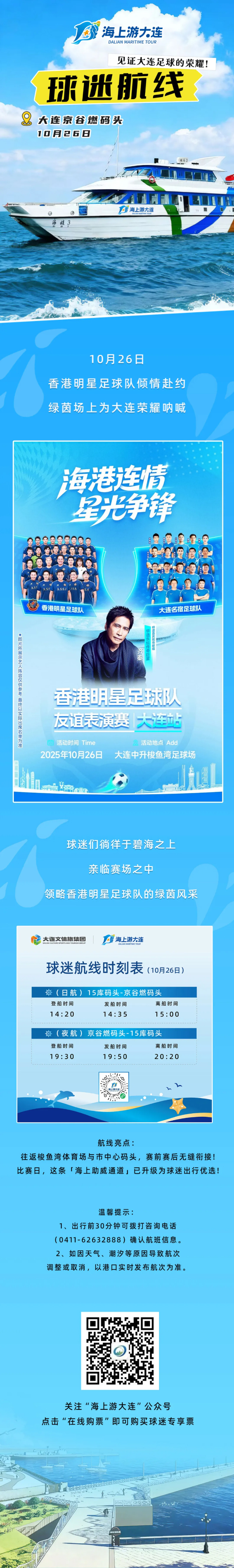 大連海上球迷專線 : 海上觀賽新體驗30分鐘直達賽場!