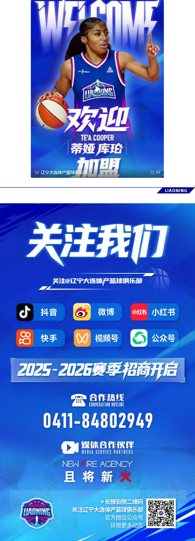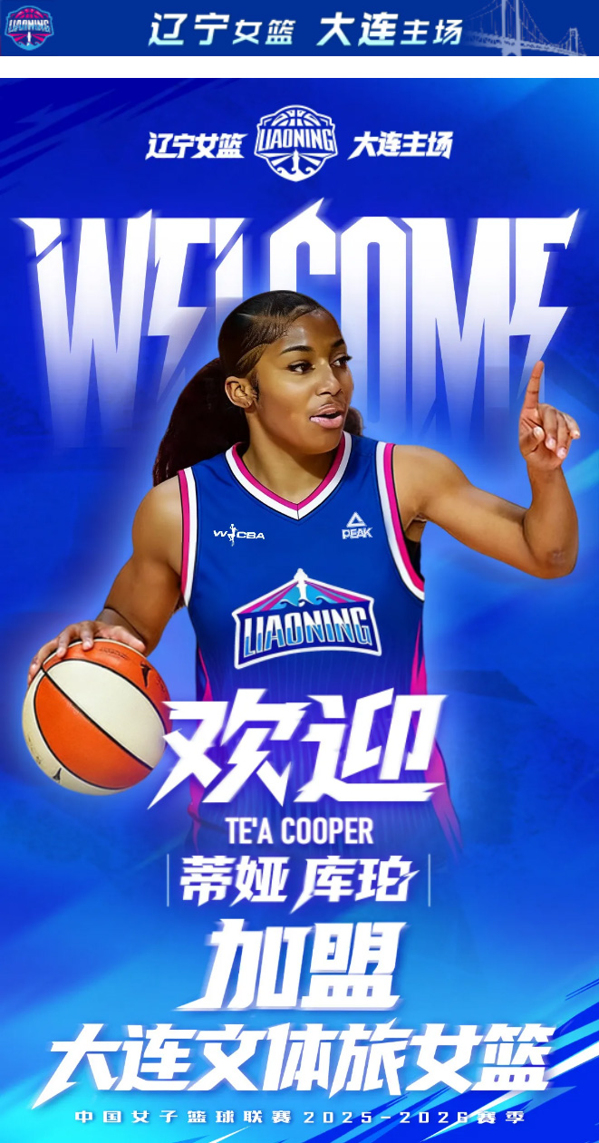 歡迎蒂婭 · 庫(kù)珀加入大連文體旅女籃大家庭!期待她在新賽季中充分發(fā)揮其技術(shù)與經(jīng)驗(yàn),幫助球隊(duì)在WCBA賽場(chǎng)上披荊斬棘,奏響更多勝利凱歌!