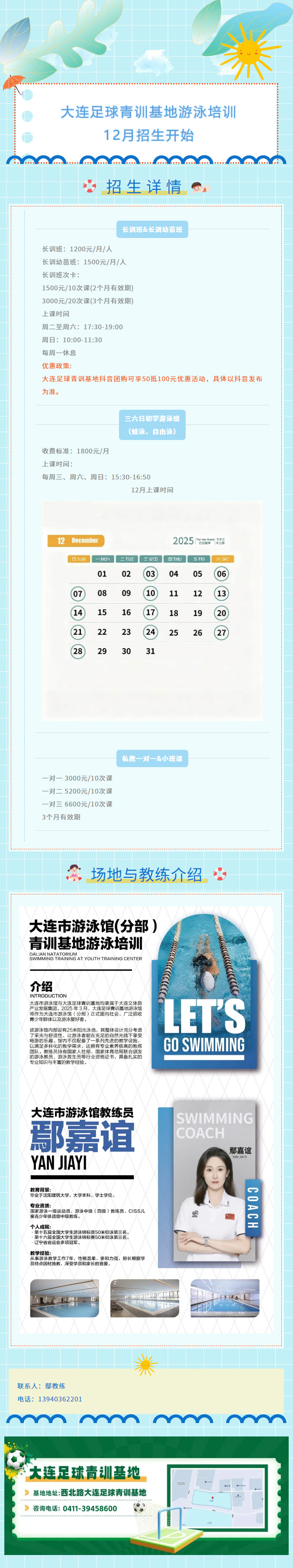 大連足球青訓(xùn)基地游泳培訓(xùn)12月招生開始