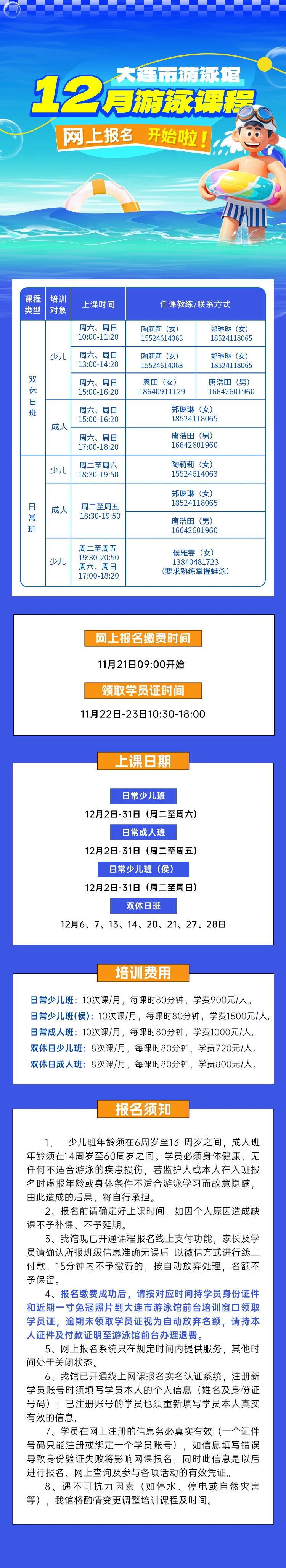 大連市游泳館十二月游泳課程網(wǎng)上報(bào)名開始啦!