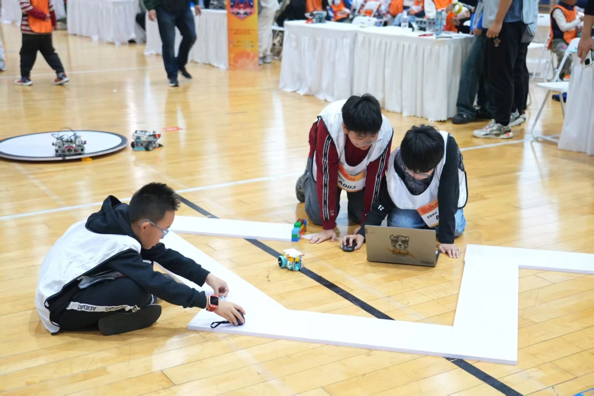 賽事設(shè)置投擲挑戰(zhàn)、冰壺挑戰(zhàn)、相撲挑戰(zhàn)、循線挑戰(zhàn)、迷宮挑戰(zhàn)賽五大核心賽項(xiàng),其中,冰壺賽項(xiàng)模擬冰雪運(yùn)動(dòng)的精準(zhǔn)博弈,選手需通過編程控制機(jī)器人完成冰壺投擲與走位;超級(jí)巡線與迷宮賽則要求機(jī)器人在復(fù)雜路徑中實(shí)現(xiàn)精準(zhǔn)避障與高效行進(jìn);相撲與投擲挑戰(zhàn)則更注重機(jī)械結(jié)構(gòu)設(shè)計(jì)與對(duì)抗策略,展現(xiàn)青少年的動(dòng)手實(shí)踐與臨場應(yīng)變能力。