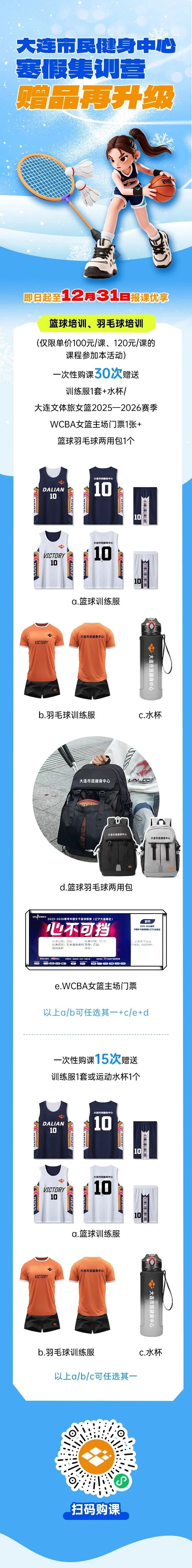 大連市民健身中心寒假集訓(xùn)營(yíng)贈(zèng)品再升級(jí)