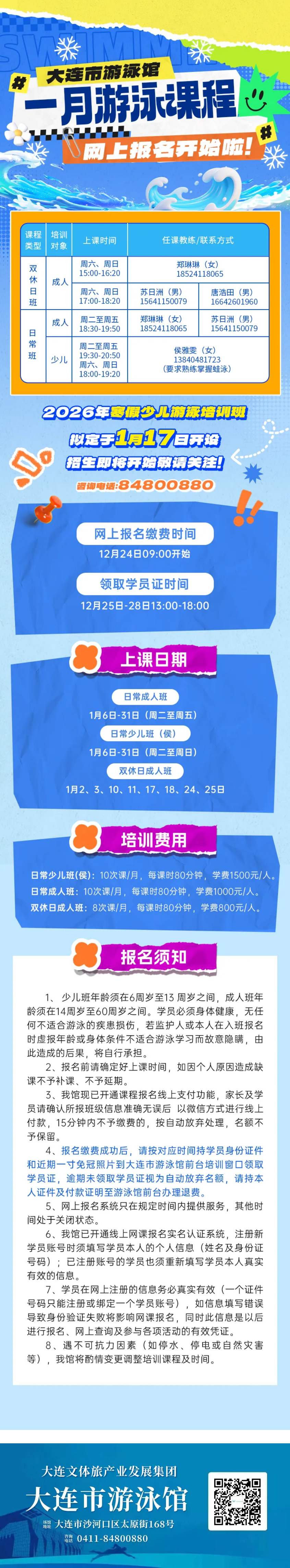 大連市游泳館一月游泳課程網(wǎng)上報(bào)名開(kāi)始啦!