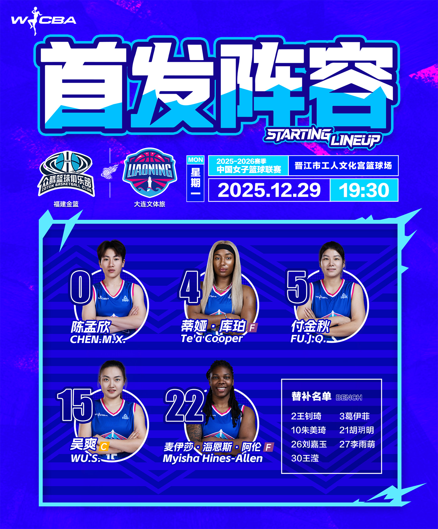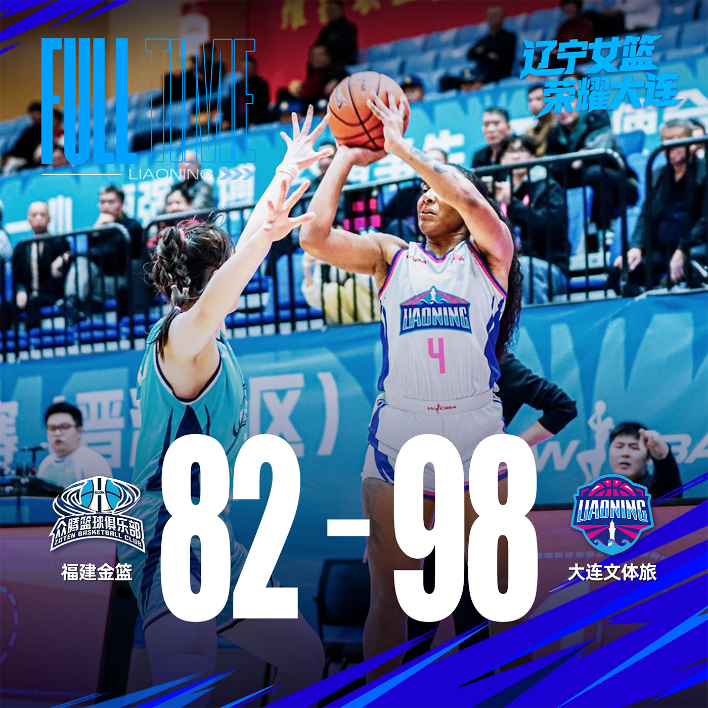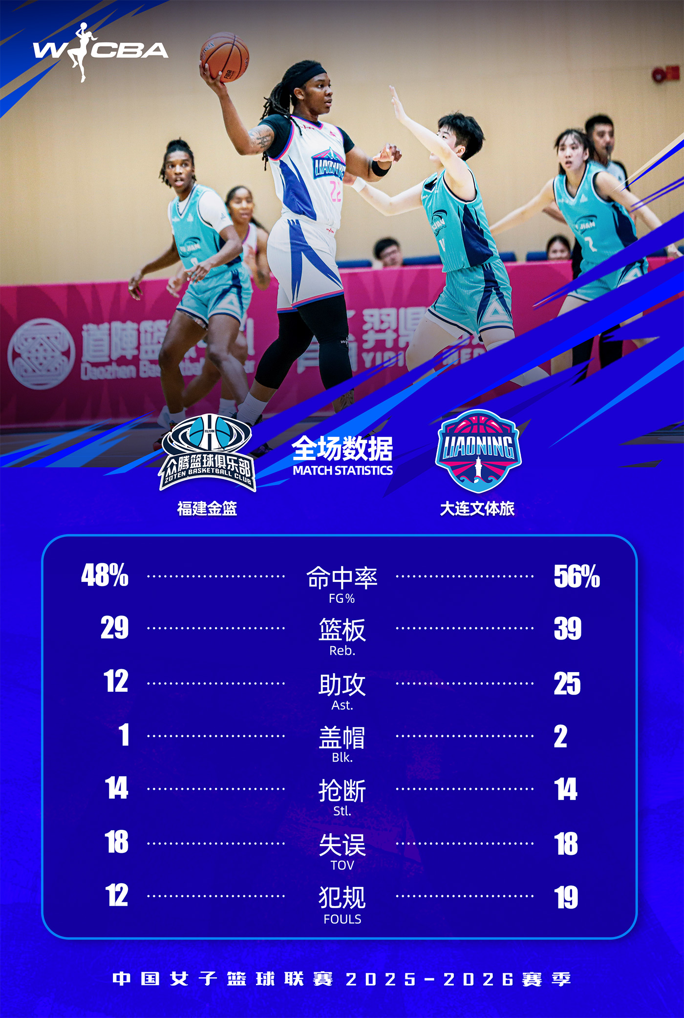 北京時間2025年12月29日19時30分,2025-26賽季W(wǎng)CBA常規(guī)賽第十輪展開較量,大連文體旅女籃客場對陣福建金籃女籃。全場比賽,大連文體旅女籃多點(diǎn)開花,始終掌握場上主動,最終98:82戰(zhàn)勝福建金籃女籃。