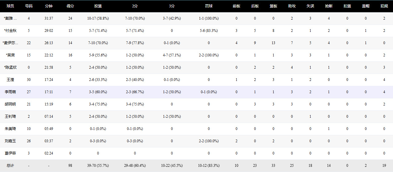 末節(jié)開始,大連文體旅沒有給對手反撲的機(jī)會,阿倫連得6分,胡玥明也貢獻(xiàn)得分,打出一波進(jìn)攻高潮,徹底鎖定勝局。盡管福建隊(duì)在外線努力追分,但王釗琦及時回應(yīng)一記關(guān)鍵三分,吳爽與劉嘉玉則通過穩(wěn)健的罰球再添4分。最終,大連文體旅女籃98:82戰(zhàn)勝福建金籃女籃。