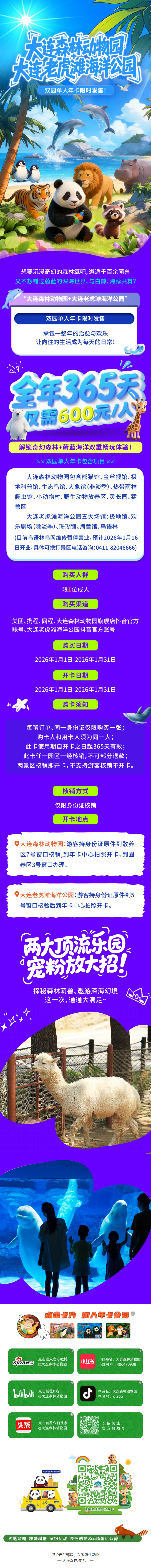 “大連森林動(dòng)物園+大連老虎灘海洋公園”雙園單人年卡限時(shí)發(fā)售!