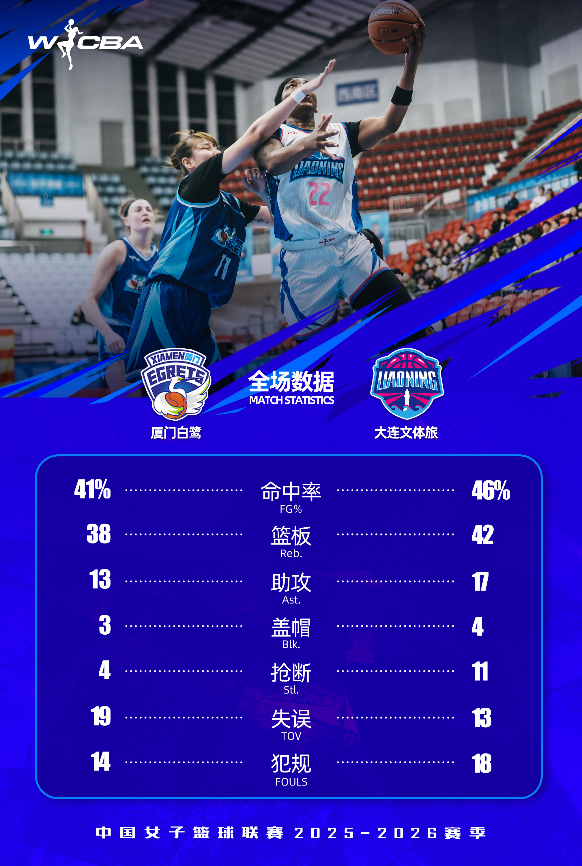 北京時間2026年1月1日19時30分,2025-26賽季W(wǎng)CBA常規(guī)賽第十一輪,大連文體旅女籃客場對陣廈門白鷺女籃。全場比賽,大連文體旅女籃展現(xiàn)出強大的整體實力與火熱手感,攻防兩端全面壓制對手,最終大連文體旅女籃91:69戰(zhàn)勝廈門白鷺女籃,用一場酣暢淋漓的勝利為2026年開年獻禮!