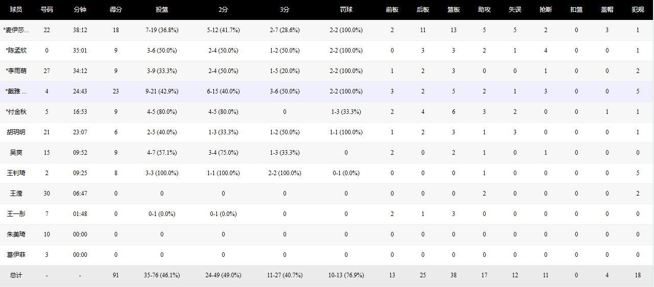 末節(jié)開始,大連文體旅女籃依然保持著高強度的比賽專注度,王釗琦突破上籃率先取分,隨后胡玥明內(nèi)線強攻打成“2+1”,繼續(xù)擴大領(lǐng)先優(yōu)勢。阿倫、吳爽、胡玥明在外線連續(xù)得分,徹底鎖定勝局。全場比賽結(jié)束,大連文體旅女籃91:69戰(zhàn)勝廈門白鷺女籃!